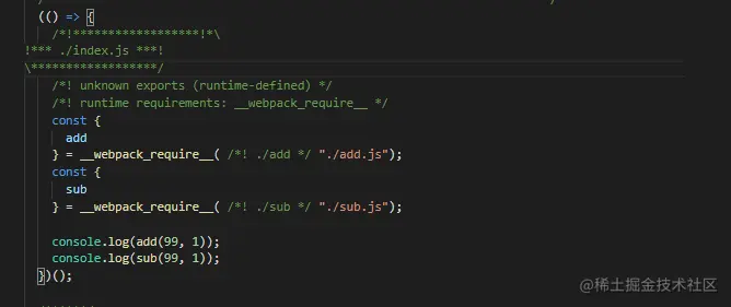 其实就是入口 index.js 里的代码块,对导出模块部分做了相应的处理,其内部调用 webpack_require 函数实现了模块的导入功能
