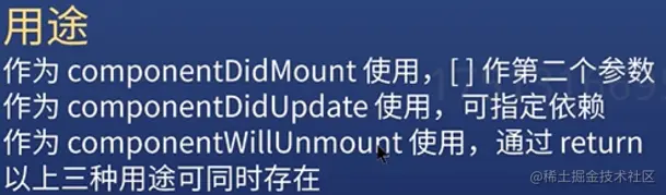 useEffect 是每次render之后就会调用的函数,可以代替之前的三个钩子