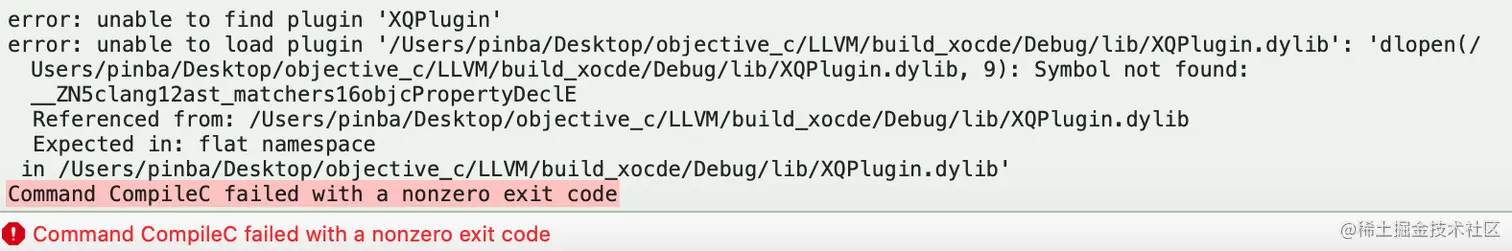 - 由于Clang插件需要使用对应的版本去加载,如果版本不一致则会导致编译错误,会出现如下图所示: