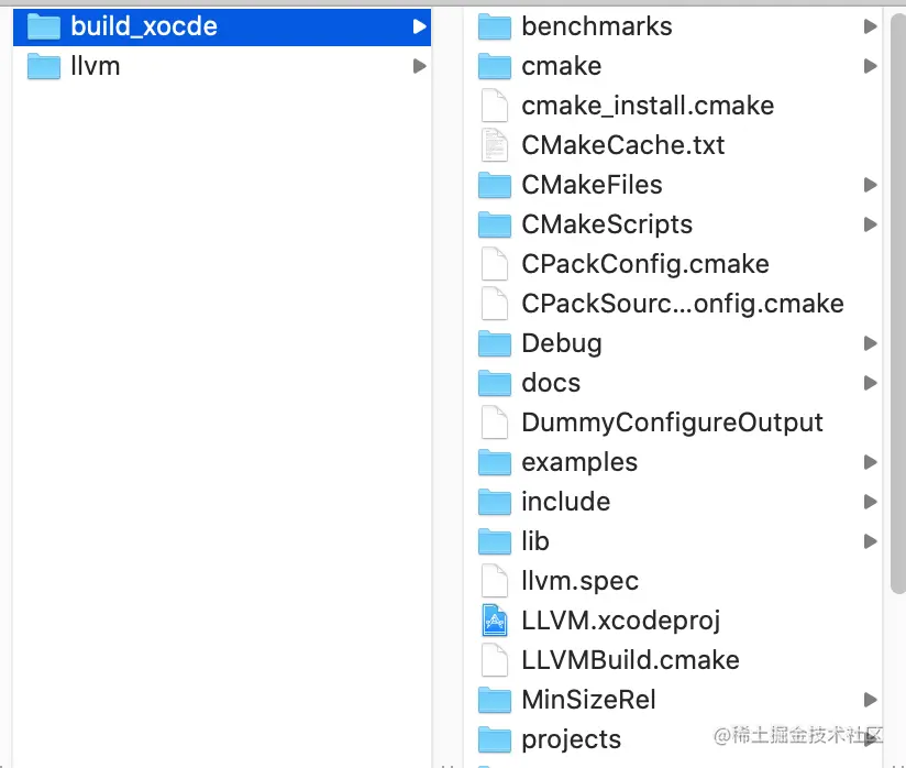 // 或者: cmake -G Xcode CMAKE_BUILD_TYPE="debug" ../llvm