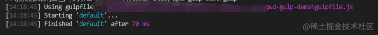 5、测试,在项目根目录下执行 gulp 命令:gulp,显示如下信息,基本配置就已经成功了