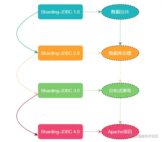 Sharding-JDBC 最早是当当网内部使用的一款分库分表框架,到2017年的时候才开始对外开源,这几年在大量社区贡献者的不断迭代下,功能也逐渐完善,现已更名为 ShardingSphere,2020年4⽉16⽇正式成为 Apache 软件基⾦会的顶级项⽬。