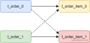 通常在我们的业务中都会使用 t_order 和 t_order_item 等表进行多表联合查询,但由于分库分表以后这些表被拆分成N多个子表。如果不配置绑定表关系,会出现笛卡尔积关联查询,将产生如下四条SQL。
