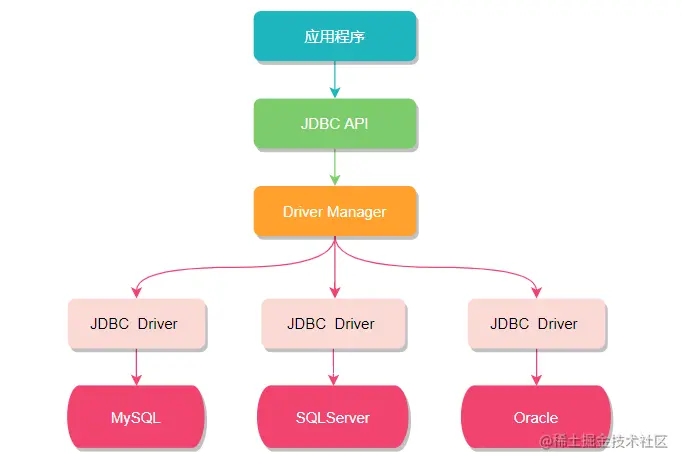 从名字上不难看出,Sharding-JDBC 和 JDBC有很大关系,我们知道 JDBC 是一种 Java 语言访问关系型数据库的规范,其设计初衷就是要提供一套用于各种数据库的统一标准,不同厂家共同遵守这套标准,并提供各自的实现方案供应用程序调用。