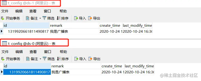 发现所有库中 t_config 表都执行了这条SQL,广播表和 MQ广播订阅的模式很相似,所有订阅的客户端都会收到同一条消息。