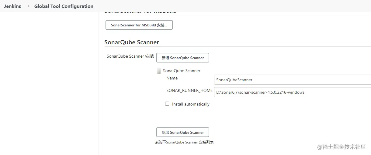可以配置本地sonar路径,也可以自动安装
