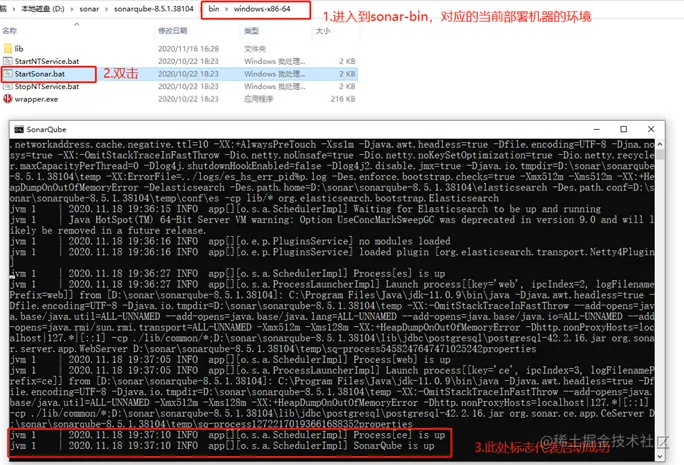 step8:进入sonar bin目录,选择对应的环境,双击StartSonar.bat