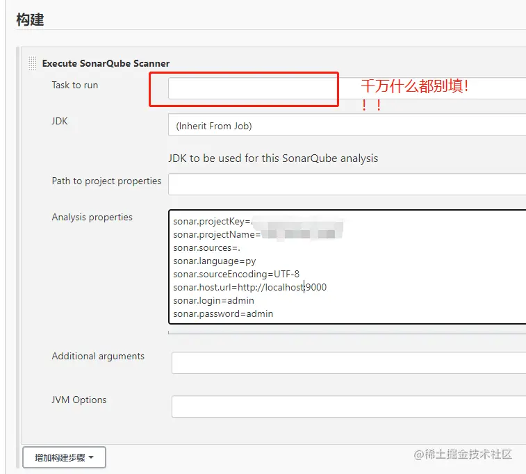 step12:本地扫描代码,在待扫描项目的根目录下添加sonar-project.properties文件,文件内容参考,参考