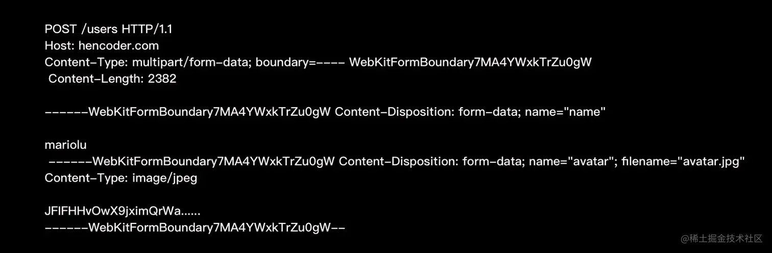 因为发送请求时,仅仅知道总长度,比如上面的请求,同时传入一个文本,和一张图片,如果没有分割符的话,没有办法对二者进行区分。