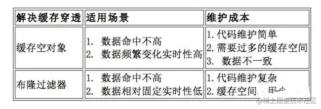 第二,缓存层和存储层的数据会有一段时间窗口的不一致,可能会对业务有一定影响。例如过期时间设置为 5 分钟,如果此时存储层添加了这个数据,那此段时间就会出现缓存层和存储层数据的不一致,此时可以利用消息系统或者其他方式清除掉缓存层中的空对象。