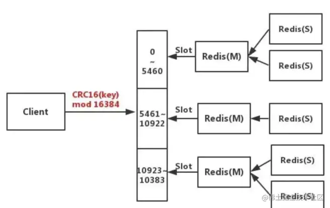 客户端与Redis节点直连,不需要中间Proxy层,直接连接任意一个Master节点,根据公式HASH_SLOT=CRC16(key) mod 16384,计算出映射到哪个分片上,然后Redis会去相应的节点进行操作