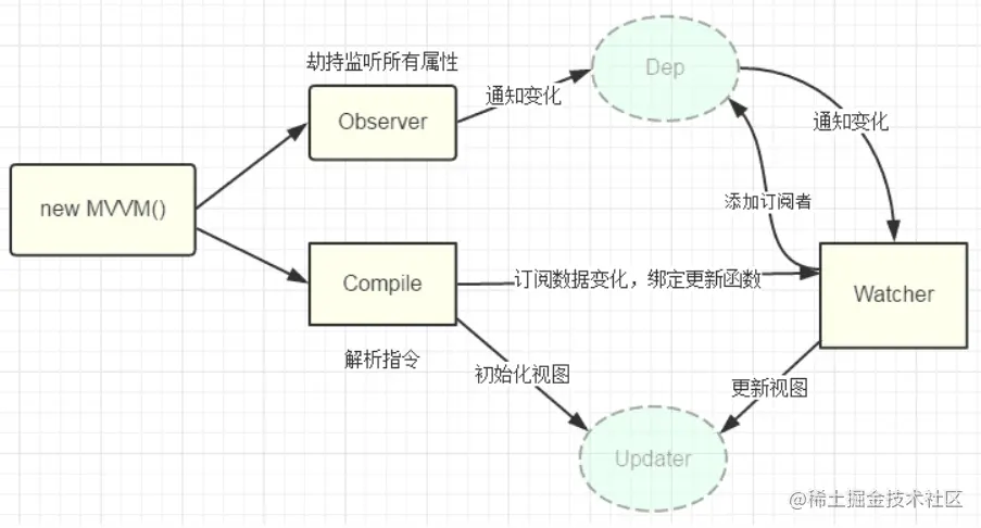 Compile :指令解析器,它的作用对每个元素节点的指令进行扫描和解析,根据指令模板替换数据,以及绑定相应的更新函数