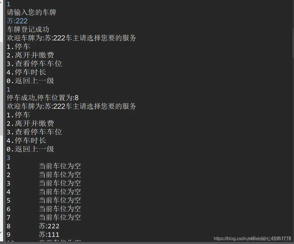 管理员: 查看现有的剩余车位 查看已停车的车位 查看停在车位上的车以及历史缴费