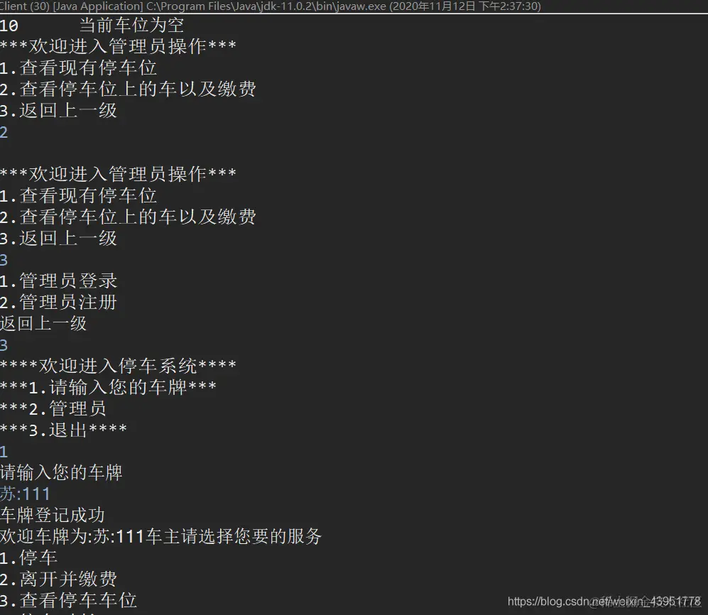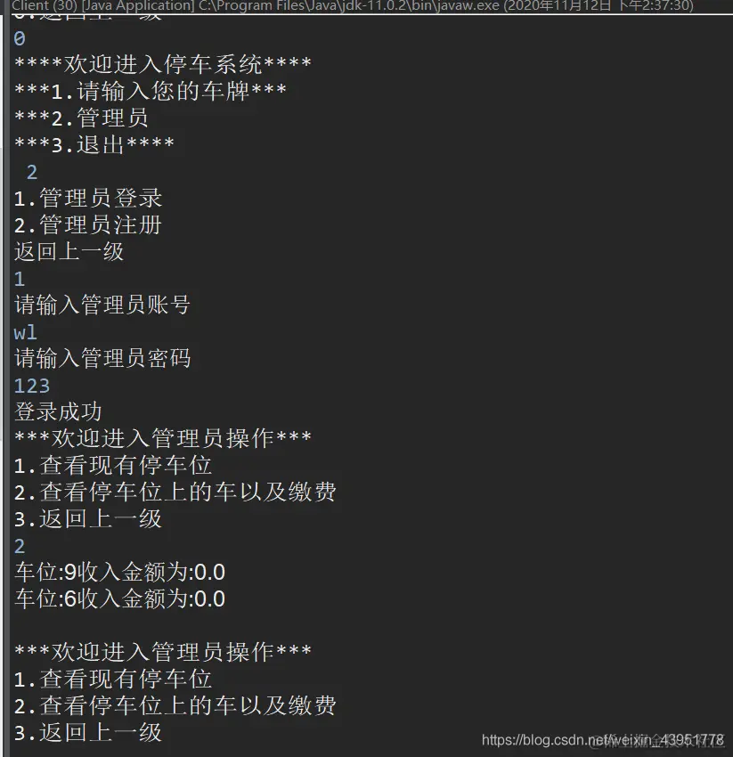 Menu_Manger2(carparkingservice, userserviceimpl, adminserviceimpl);//进行管理员操作
