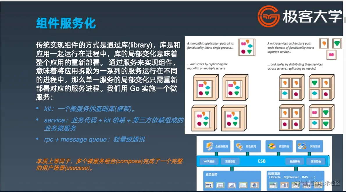 传统实现组件的方式是通过库(library),库是和应用一起运行在进程中,库的局部变化意味着整个应用的重新部署。 通过服务来实现组件,意味着将应用拆散为一系列的服务运行在不同的进程中,那么单一服务的局部变化只需重新部署对应的服务进程。