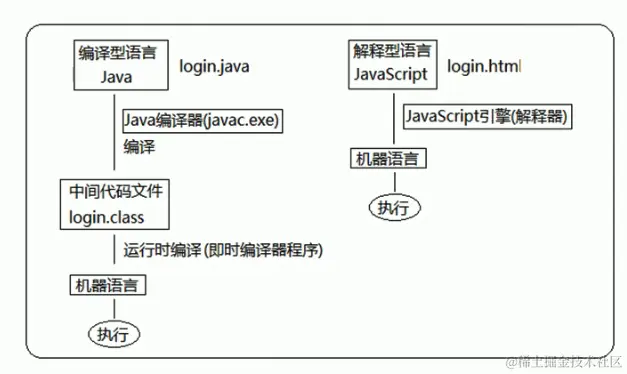 - 解释器是在运行时进行及时解释,并立即执行(当编译器以解释方式运行的时候,也称之为解释器)