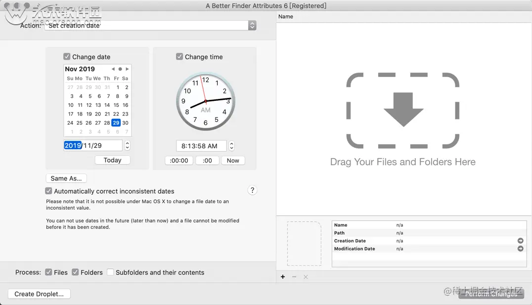 更好的Finder属性7允许您更改JPEG和RAW拍摄日期,JPEG EXIF 元数据标签,文件创建和修改日期,文件标志以及处理不可见文件。