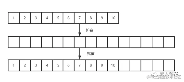 扩容之后,数组的容量足够了,就可以正常新增数据了。