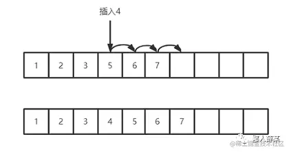 插入数据的时候,ArrayList的操作是先把3后面的数组全部复制一遍,然后将这部分数据往后移动一位,其实就是逐个赋值给后移一位的索引位置,然后3后面就可以空出一个位置,把4放入就完成了插入数据的操作了