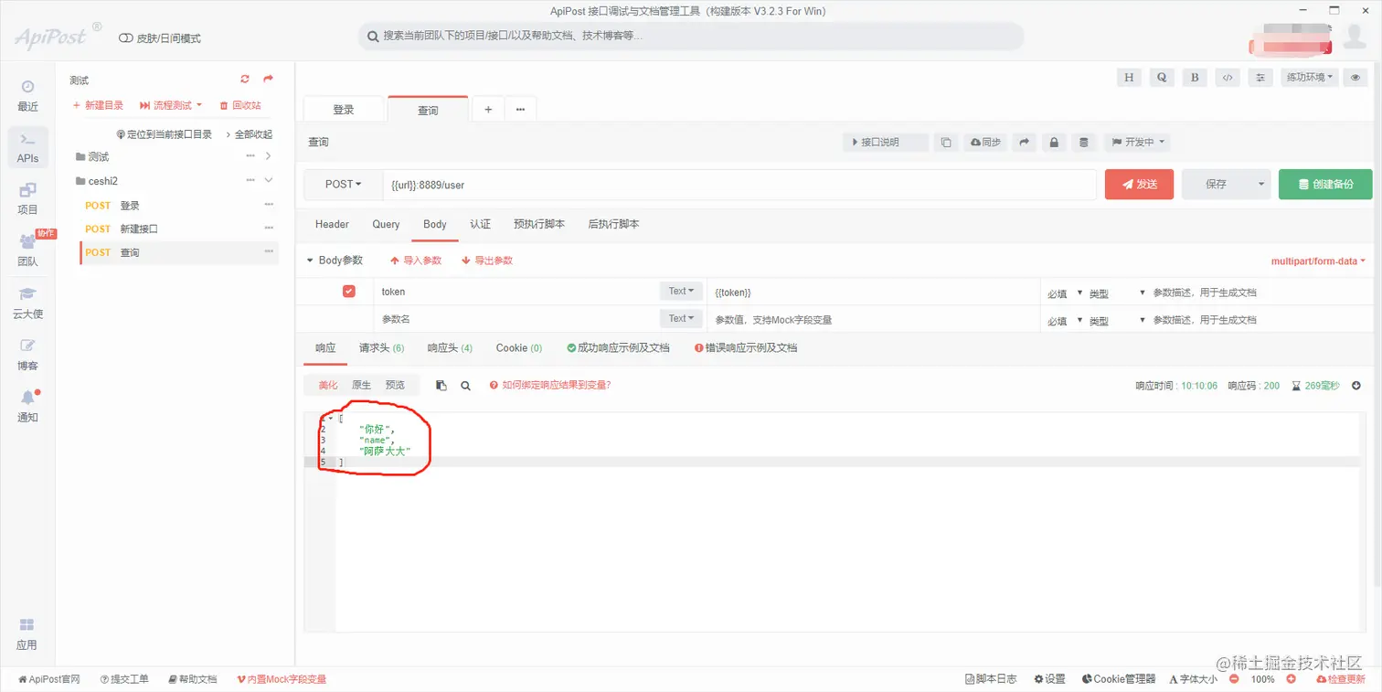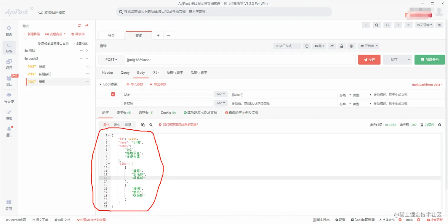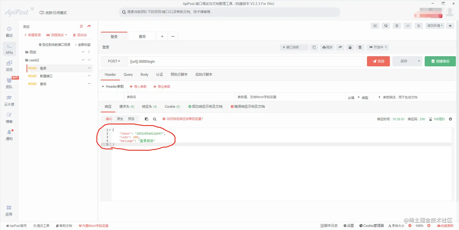 这里使用的接口测试工具是国产的接口测试工具apipost,有兴趣的朋友可以去试用一下,很好用的一款接口测试和接口文档生成工具。