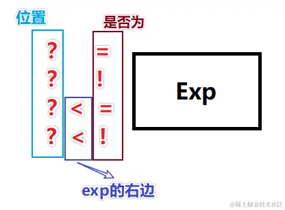 var result = "hello".replace(/(?!l)/g, '#'); console.log(result); // => "#h#ell#o#"(7) 零宽后行断言 (?<=exp) 匹配 内容exp 后面的位置