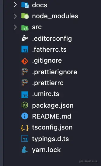 docs是dumi的文档目录,src是开发目录。