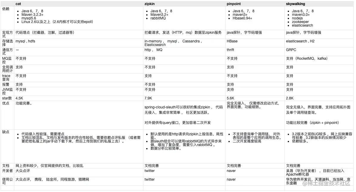 cat, zipkin, pinpoint , skywalking