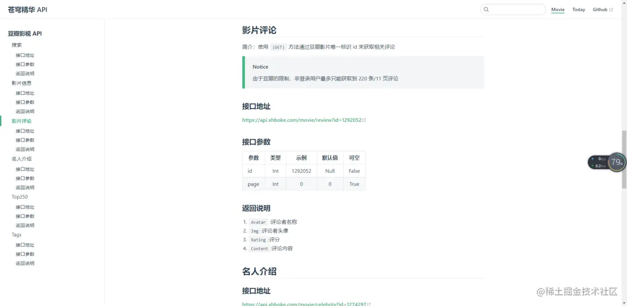 - 请求参数 id 影片的id