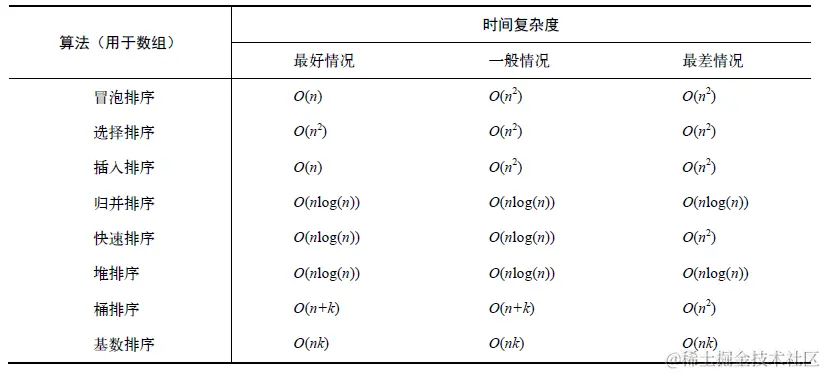 多种排序算法时间复杂度
