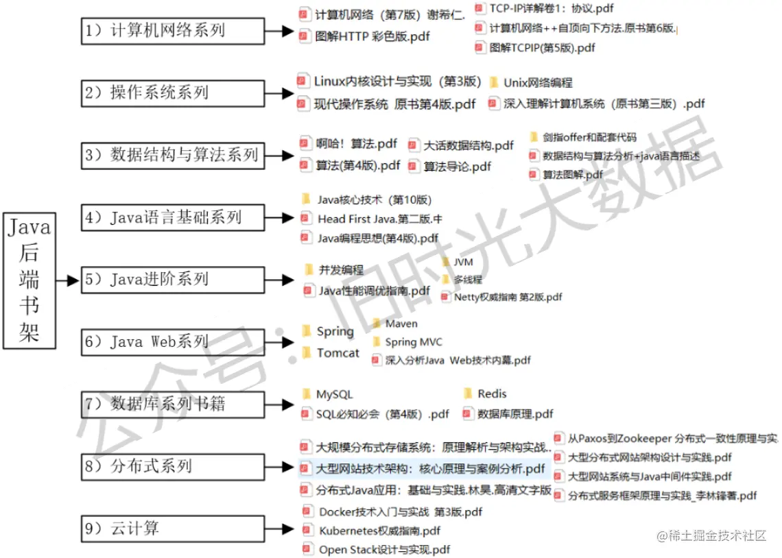 书籍部分直接云盘链接保存即可,这里我放两张Java开发和大数据开发我自己的书单(很多,路漫漫,吾将上下而求索~)