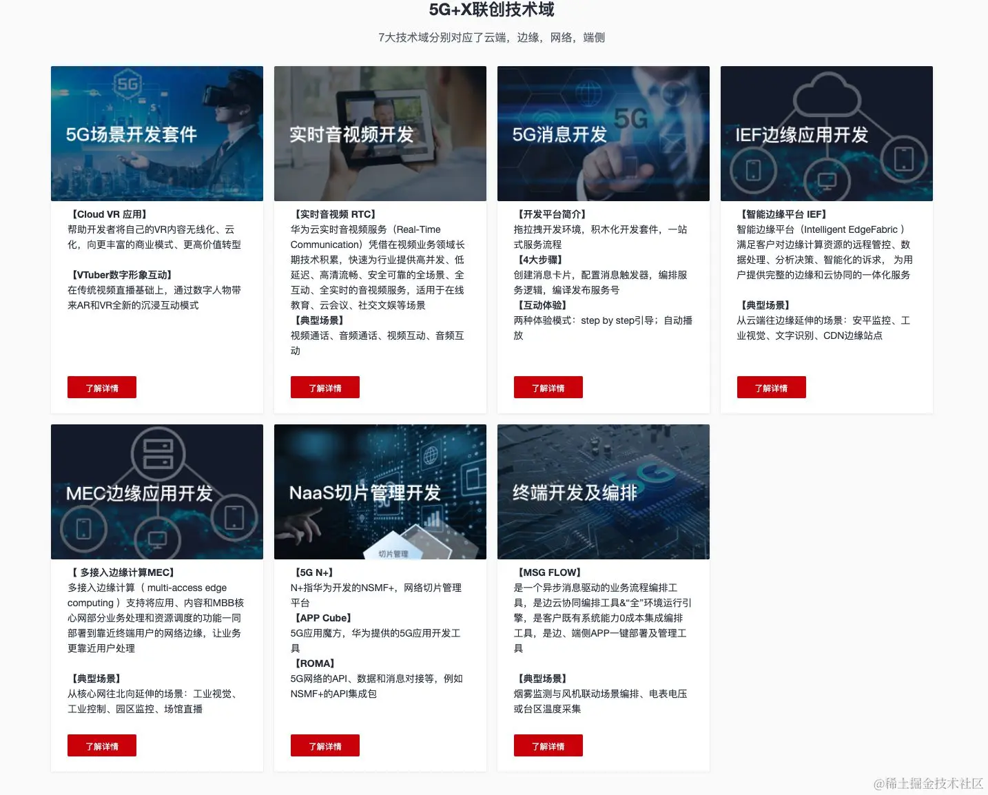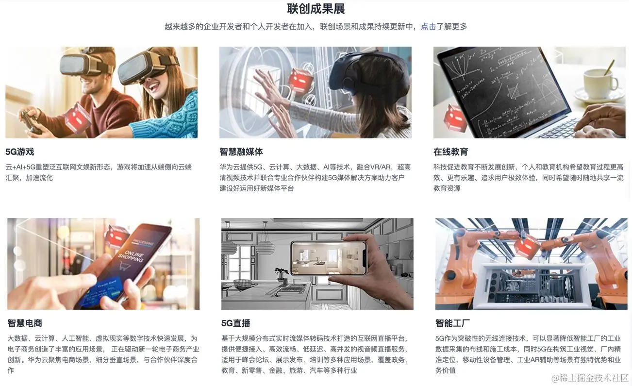 目前,5G+X联创营专区已正式在华为云官网上线,全面助力构建5G+X技术生态: