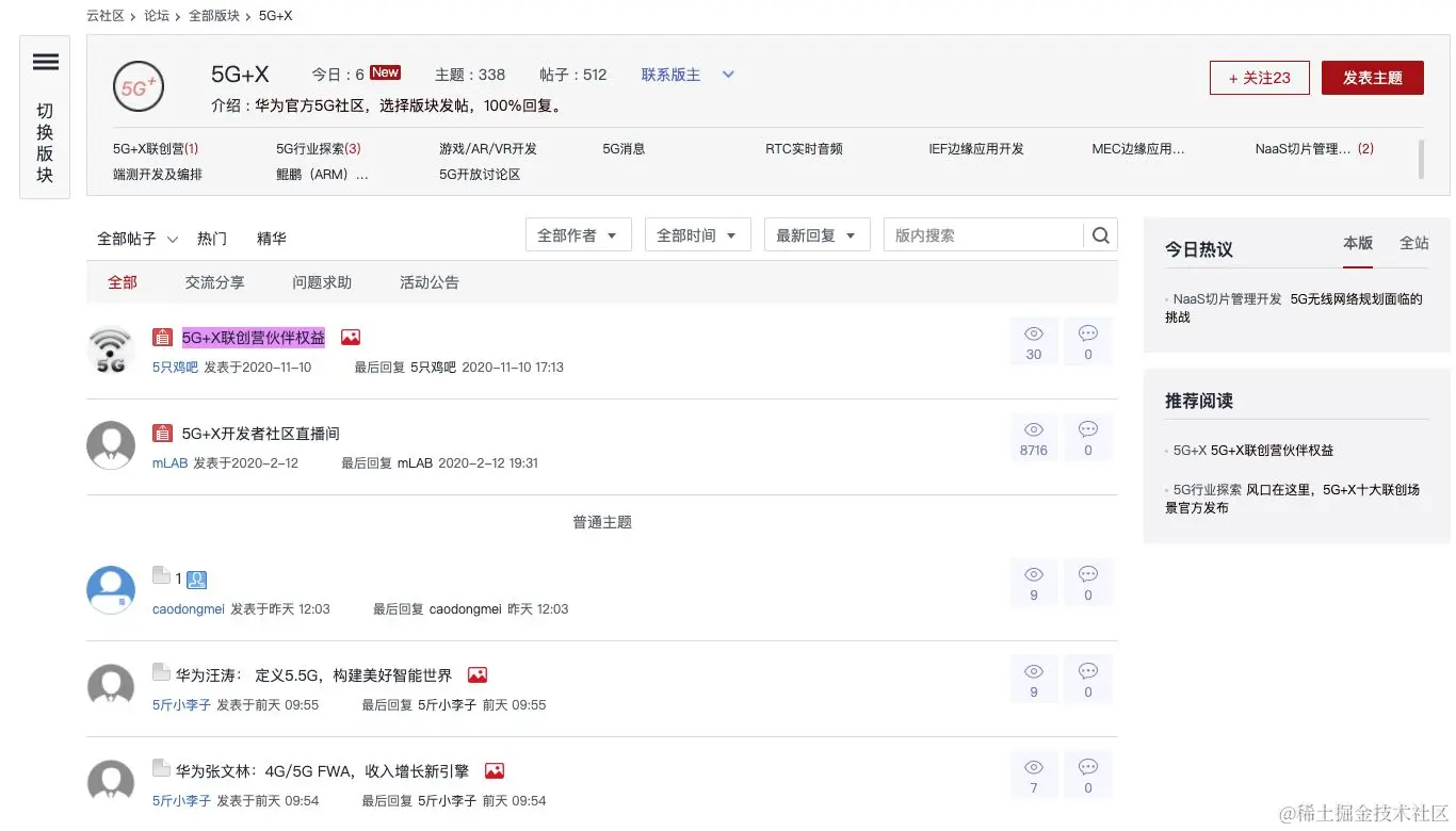 此外,5G+X联创营专区还设有论坛,5G、云计算、AI 领域的技术大咖、开发者都能在此发布帖子,讨论创新场景、发布问题和需求。你的问题将获得志同道合的小伙伴们的解答,同时也将沉淀下来给更多和你有一样问题的人参考。