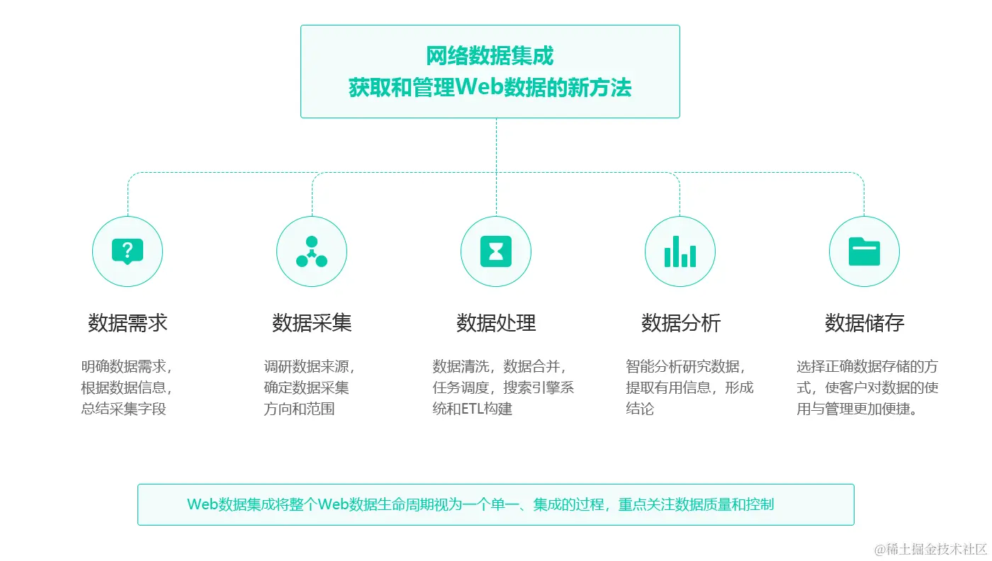 只要确定所需要的数据实在Web上,就可以选择可研究、可靠的数据源进行Web数据分析,其步骤包括:识别、采集、准备、集成和应用。在此过程中可靠和完整的数据对于准确的数据分析是必需的。