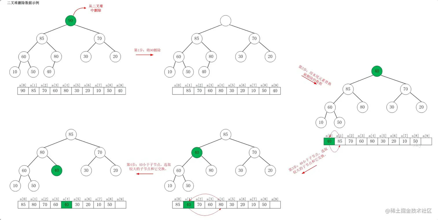 例子:90 从二叉堆中删除