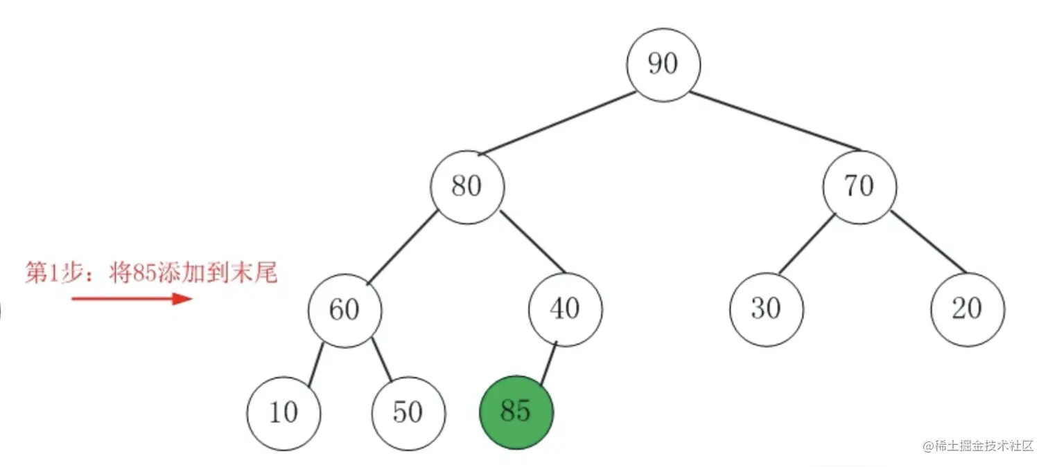 例子:85 添加到二叉堆中