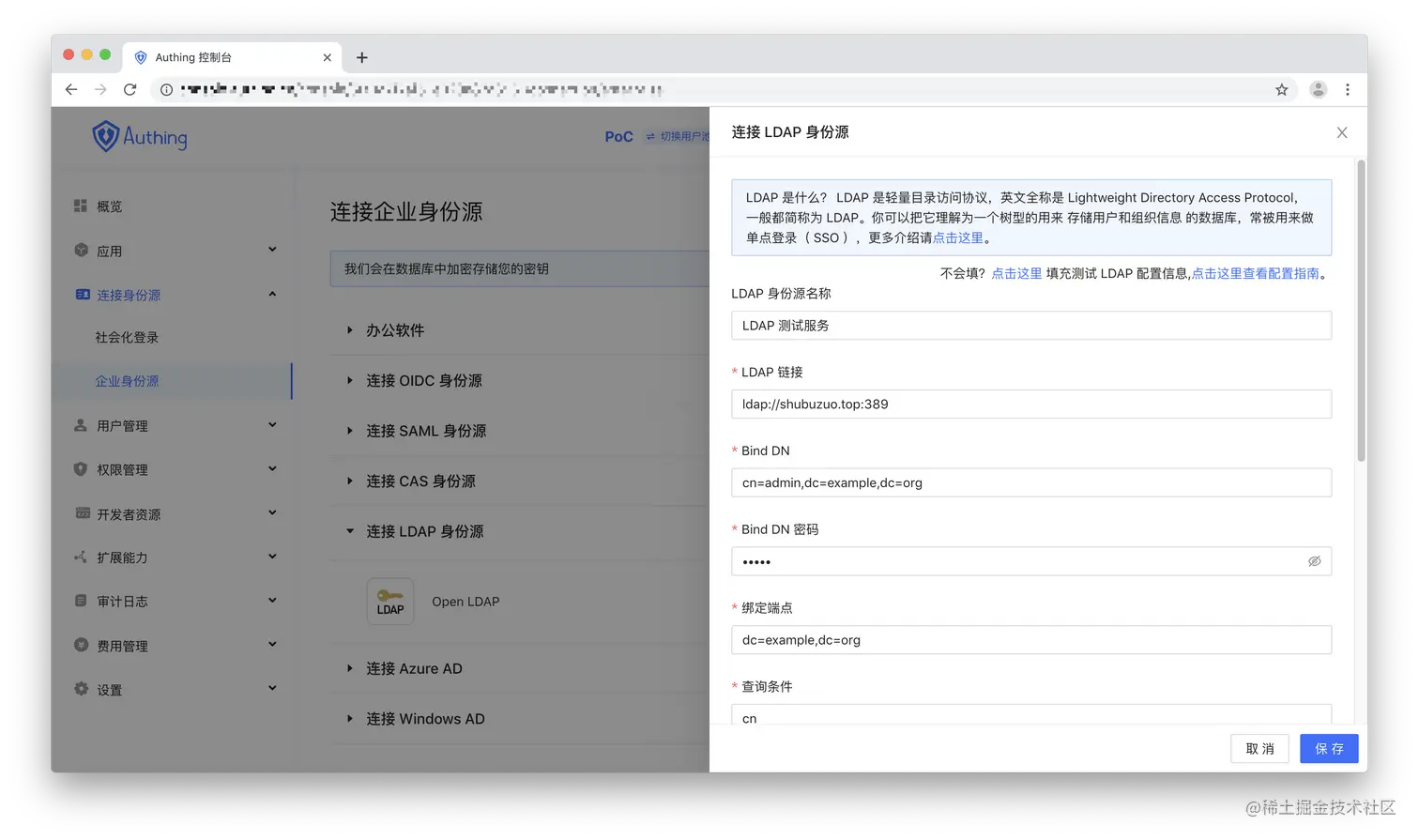 Authing 支持使用 LDAP 协议进行联邦认证。