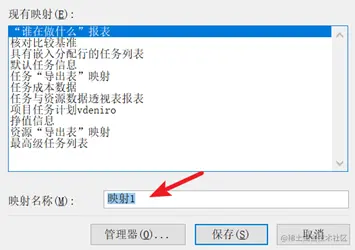 注意:这里的名称对应的是 project 中的“任务名称”。Excel 域的名称可以自定义。比如这里将“资源名称”自定义为“前置资源”。 最后我们保存刚才定义的映射关系。这样下次就可以选择映射模板就可以咯:
