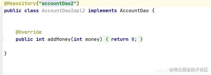 假设此时只有一个AccountDao的实现类,并且这个类也加上了@Repository注解,那么我们这样注入是可以成功的,但是如果容器中存在多个AccountDao的实现类,此时仅仅使用AccountDao是不能完成数据注入的,需要配合@Qualifier注解使用注入数据。