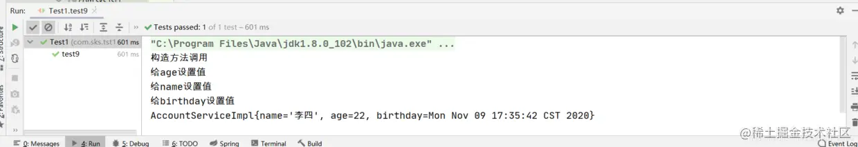 System.out.println("accountService4:" + accountService4 + " " + accountService4.getName() + " " + accountService4.getAge());