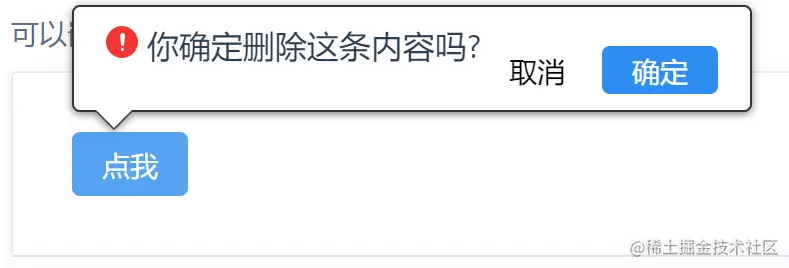 class='popover-wrapper'的div就表示popover的提示框,然后里面的<slot name='content' />表示提示框里面的内容,然后下面的div是确定、取消按钮,只有当用户传了confirm参数时才会出现; - 第二部分