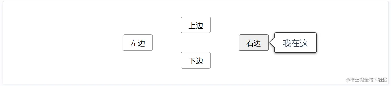 这个组件的需求还是明确的,也比较简单,一个就是点击按钮或者移入按钮,会在按钮上、下、左、右中一个方向出现提示框,然后按钮也可以换成文字等其他你想触发的内容。
