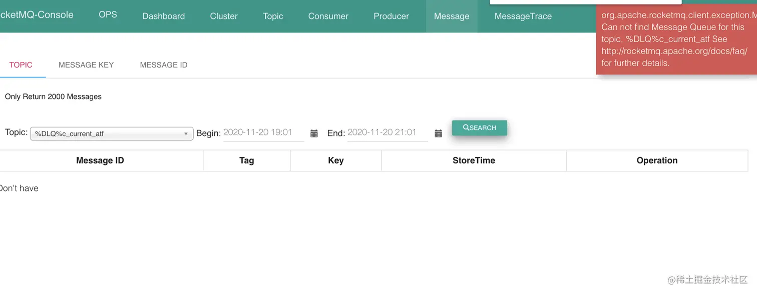 因此死信队列在控制台上查询,默认是查询不到的