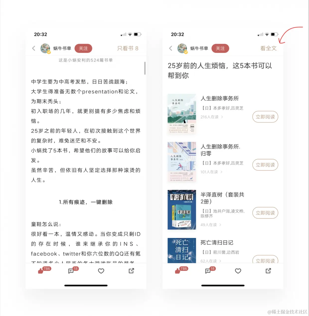 在产品争抢着所有人的注意力时,大家越发觉得时间的碎片化和注意力缺失,社会更多的向更加短平快的节奏前进。由此而生的问题是怎么帮用户管理注意力,面对追求“效率”“干货”的用户,“只看书”功能个给出了答案。如果读者不想阅读完完整的推文内容,或者阅读希望回头快速整理出书籍推荐,那只看书会轻松帮用户节省带宽,并引导用户立刻进行阅读。