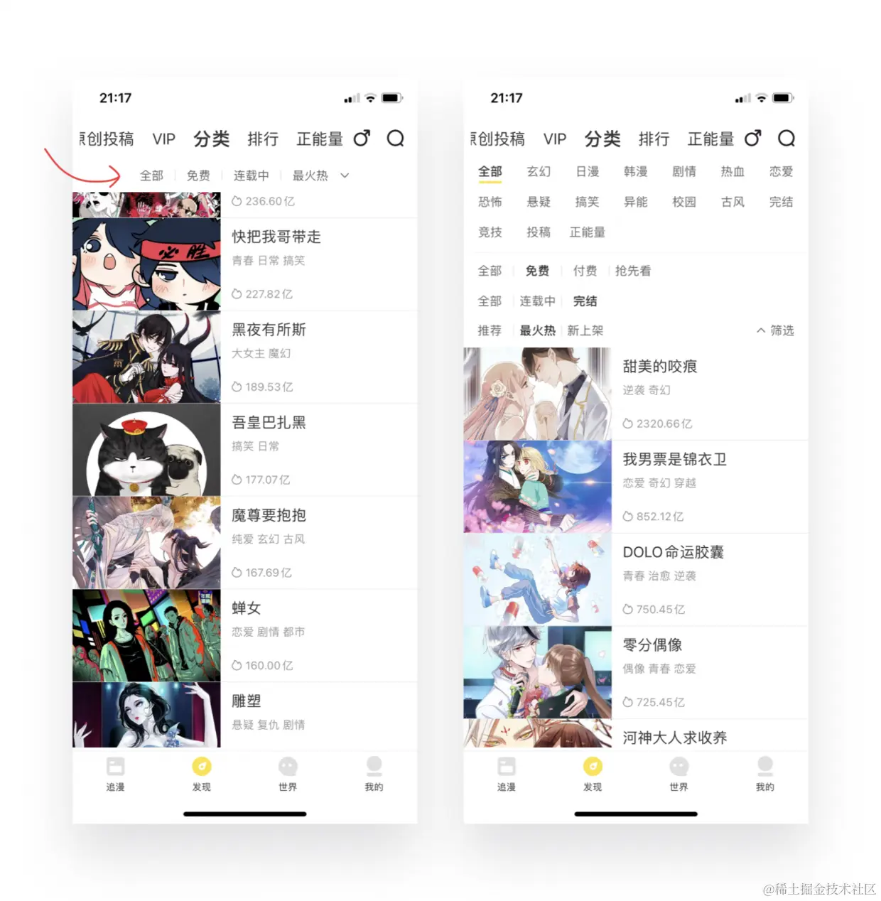 咸鱼白菜,各有所爱。推荐在各大产品都特别常见,很多推荐都只带有“查看更多”或者“换一批”其中一个选项。快看漫画把两者都呈现出来,更大程度的满足不同用户的不同体验需求。像我比较懒就喜欢在原地换一换,连跳转都觉得麻烦~,更适合没有明确目标的用户需求;相反有特定寻找需求的用户则倾向查看更多,通过滑动更高效寻找信息。既然一个方法不能满足所有用户,就多呈现不同的方法。