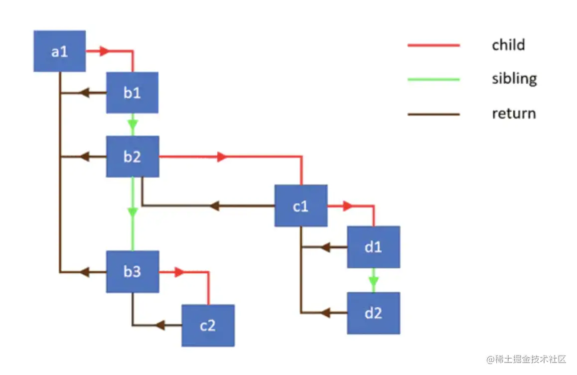 doWork完成后,会执行performUnitOfWork方法获得新节点,然后再重复上面的过程。 - 当所以节点都