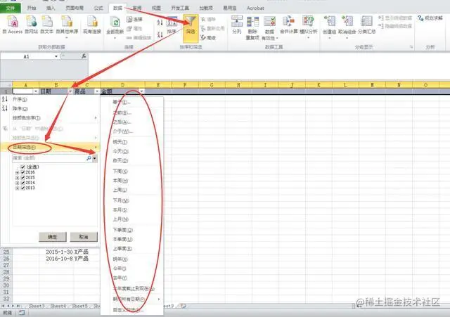 当单元格是日期时,出现的是“日期筛选”按钮!