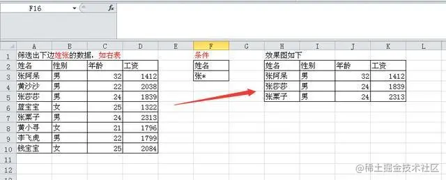 筛选出下边姓张的数据