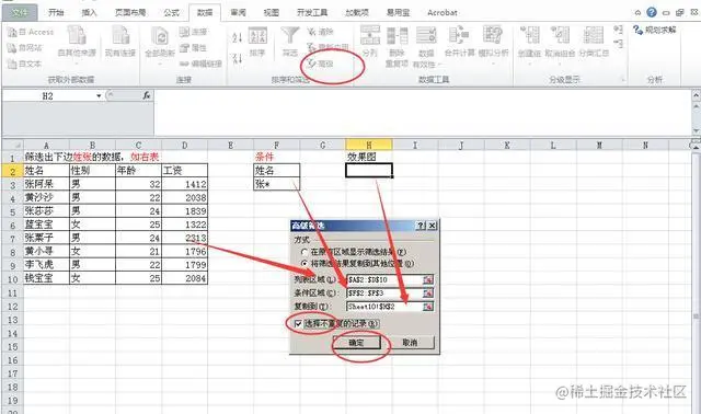 这里,我们就可以直接用高级筛选来得到我们想要的数据了