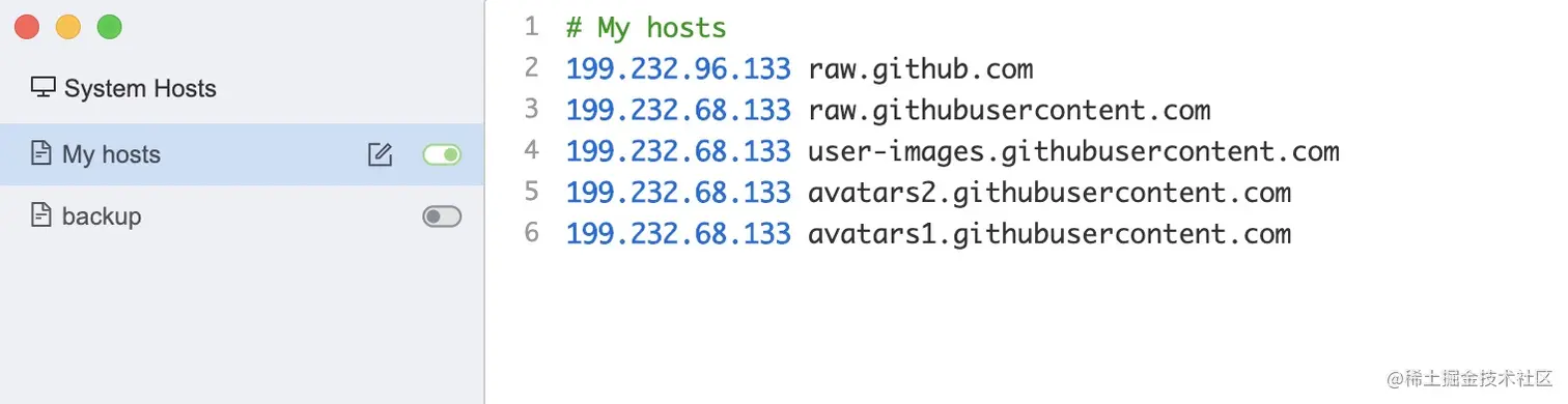 2.在本机的 host 文件中添加,建议使用 switchhosts 方便 host 管理