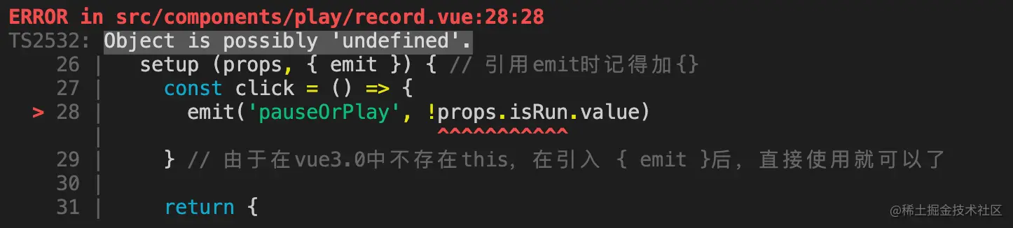 为此,需要引入defineComponentimport { defineComponent } from 'vue',并在 export default处调用defineComponent。